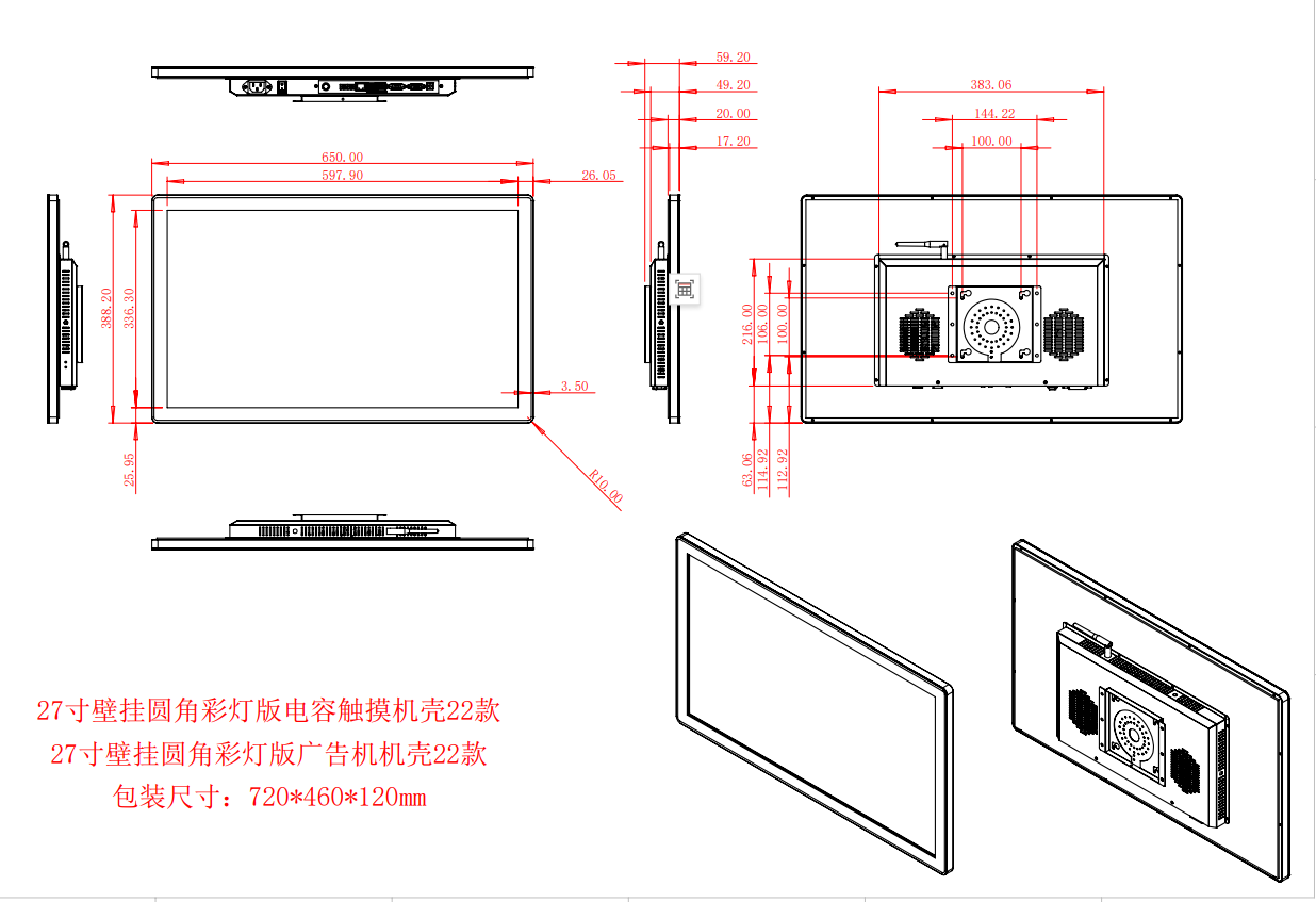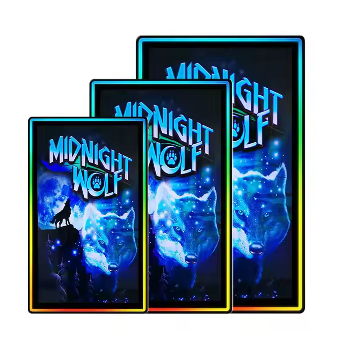 Äskettäin räätälöity 27 tuuman kapasitiivinen kosketusnäytön näytönvalvonta, jossa on RGB -LED, jota käytetään pääasiassa mainontajulkaisussa, pelikoneissa, kapasitiivinen kosketusnäytön näytöllä led -valot pelin pelaamiseen. Kaikkien mukaisten koot.