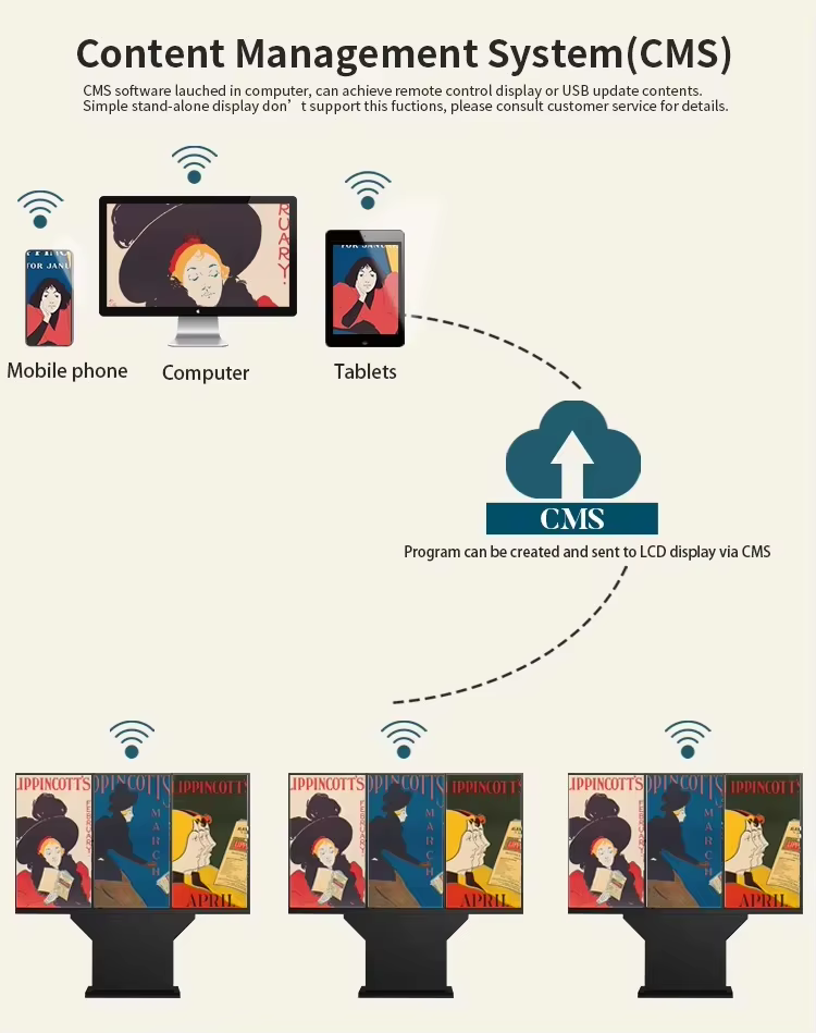 Insinöörit voivat saavuttaa 100%: n seurannan ja hallinnan toimistossa Marvel OMC -ohjelmistolla. Tuke pitkän matkan online-julkaiseminen, seurata nykyisiä lähetysohjelmia, hallita useita laitteita jne. Marvel CMS -ohjelmiston kautta.Mitä käyttää Marvel Outdoor LCD-digitaalisia merkkejä? Linja-autojen turvakotit / rautatieasema