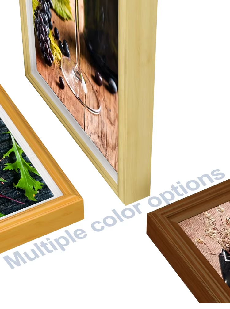 8. Kuinka monet tämän NFT -näyttökehyksen värit? Puukehys värit: musta, valkoinen, koivu, mahonki, mukautettu väri.