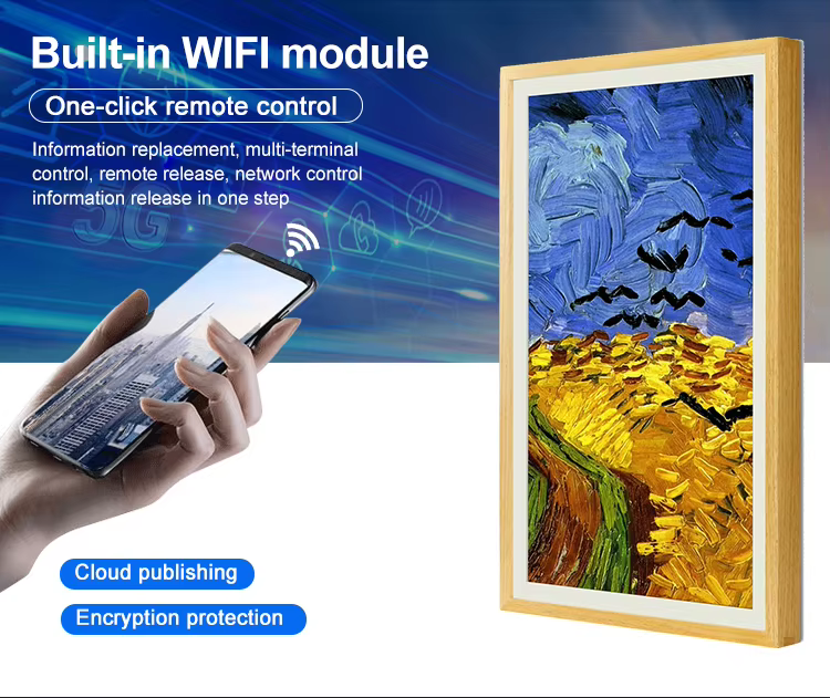 Uusi Android WiFi -ohut seinäkiinnitys Kioskin digitaalinen taidekehys NFT 21,5 32 43 55 65 75 85 100 tuuman 4kdigital Photo Frame -elokuvajuliste